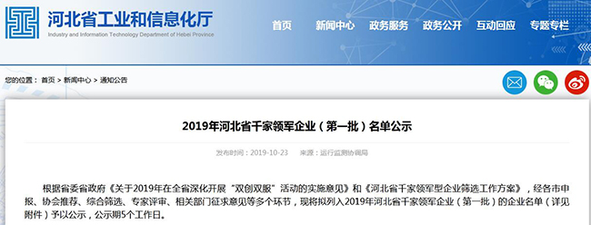 安博·体育(中国)官方网站获得河北省第一批千家领军企业称号