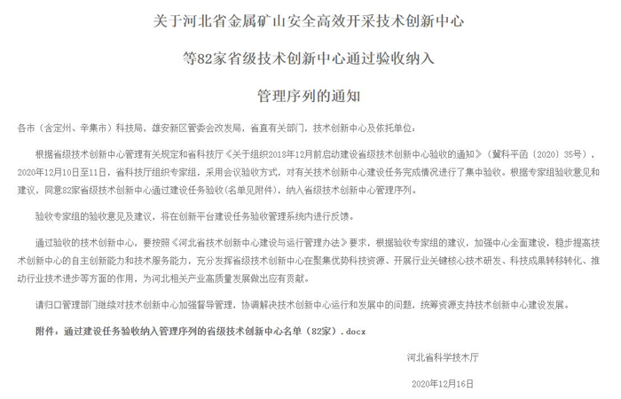 万杰科技通过建设任务验收纳入管理序列的省级技术创新中心