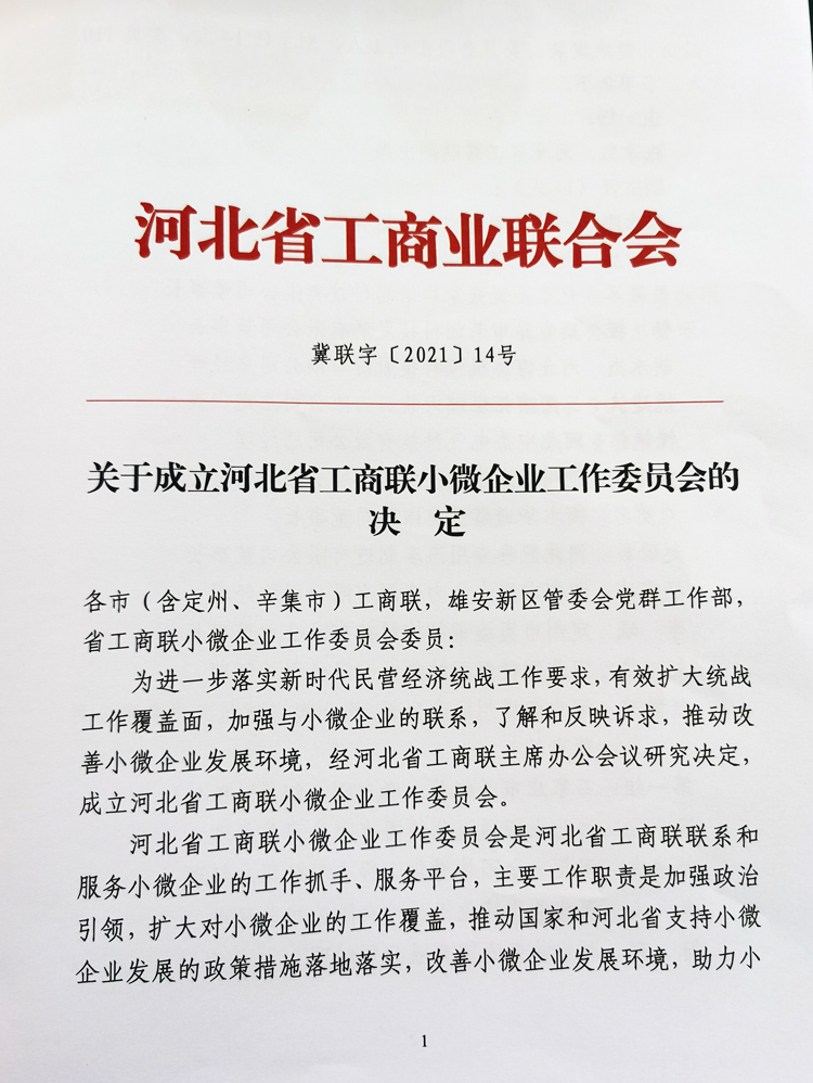 热烈祝贺河北省工商联小微企业工作委员会成立,在成立大会上,安博·体育(中国)官方网站总经理胡永杰先生当选河北省工商联小微企业工作委员会副主任!