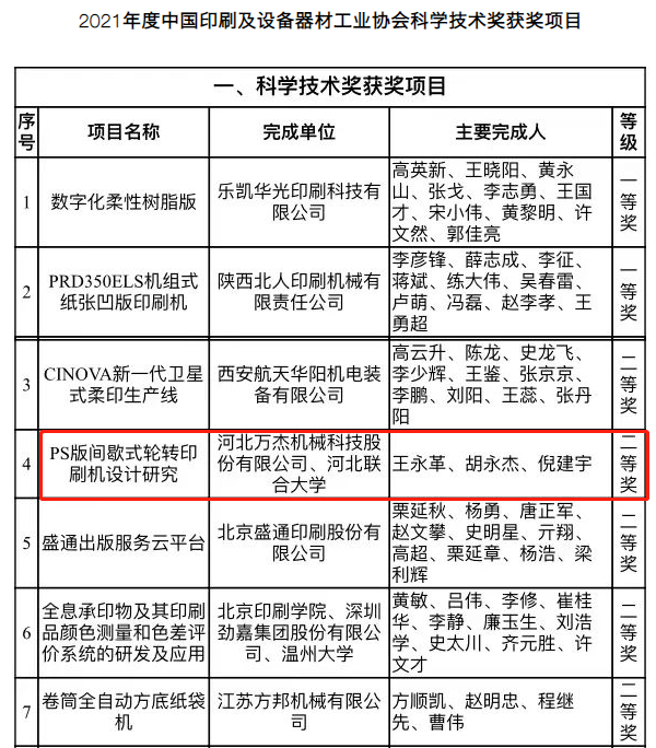 安博·体育(中国)官方网站自主研发的ps版间歇轮转印刷机获得中国印刷及设备器材工业协会科学技术二等奖