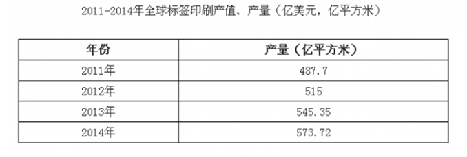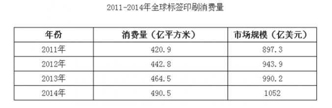 2013年全球标签印刷市场消费量为486.91亿平方米,2014年达到510.8亿平方米,同比增长4.9%。